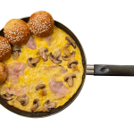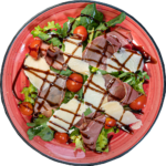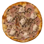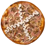 доматен сос, кашкавал, шунка, печурки, оригано, крем пилешка салата