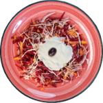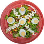 марула, варено јајце, маслинки, мајонез, вариво (пченка, грашок, морков), фурнаринки