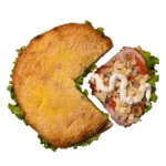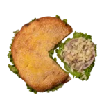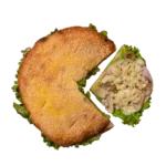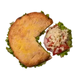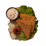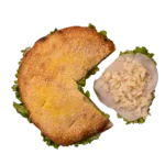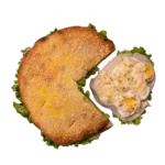 пилешка прса, кашкавал, мајонез, павлака, кисела краставичка, фурнаринки