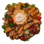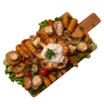пилешки прсти, кашкавал, пирошка, зденки, печурки со моцарела, маслинки, кромид, крокети