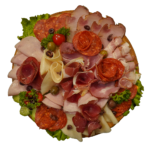 свински врат, кулен, сланина, шунка, сирење, свинска или говедска пршута, домати, пилешка прса, кашкавал, краставици