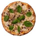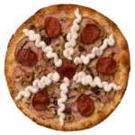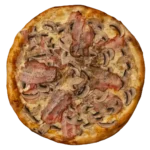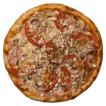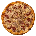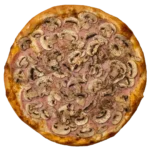 доматен сос, кашкавал, печурки, шунка, маслинки, павлака, оригано