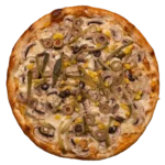 доматен сос, пченка, кашкавал, печурки, маслинки, кисели краставички, оригано