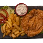 панирани пилешки прсти, тартар сос, додаток помфрит по избор