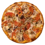 доматен сос, растителен кашкавал, печурки, маслинки, кромид, домат, пиперка, оригано