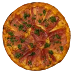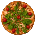 доматен сос, моцарела, рукола, пршута, оригано, шери домати